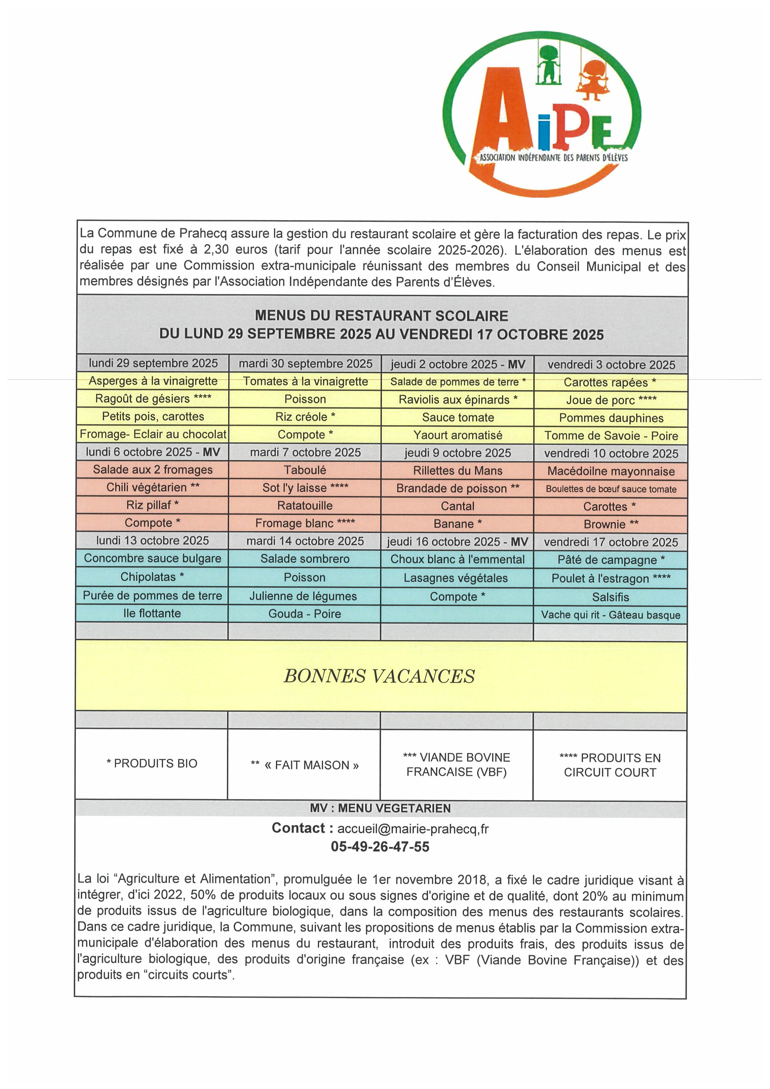 MENUS SEPTEMBRE A OCTOBRE 2025